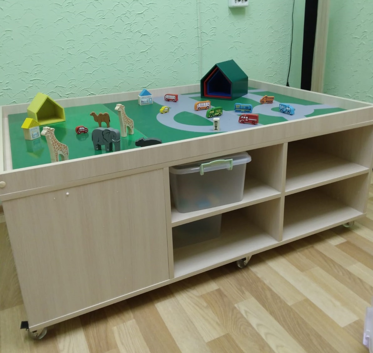 Яркий ландшафтный стол с комплектом деревянных фигур для сюжетных игр - эффективный инструмент для развития воображения, координации движений, наблюдательности и речи. Занятия на световом песочном столе улучшают мелкую моторику, стимулируют работу мозга и образного мышления, помогают снять стресс. Важно, что стол также используют и при диагностике эмоционального состояния ребенка.