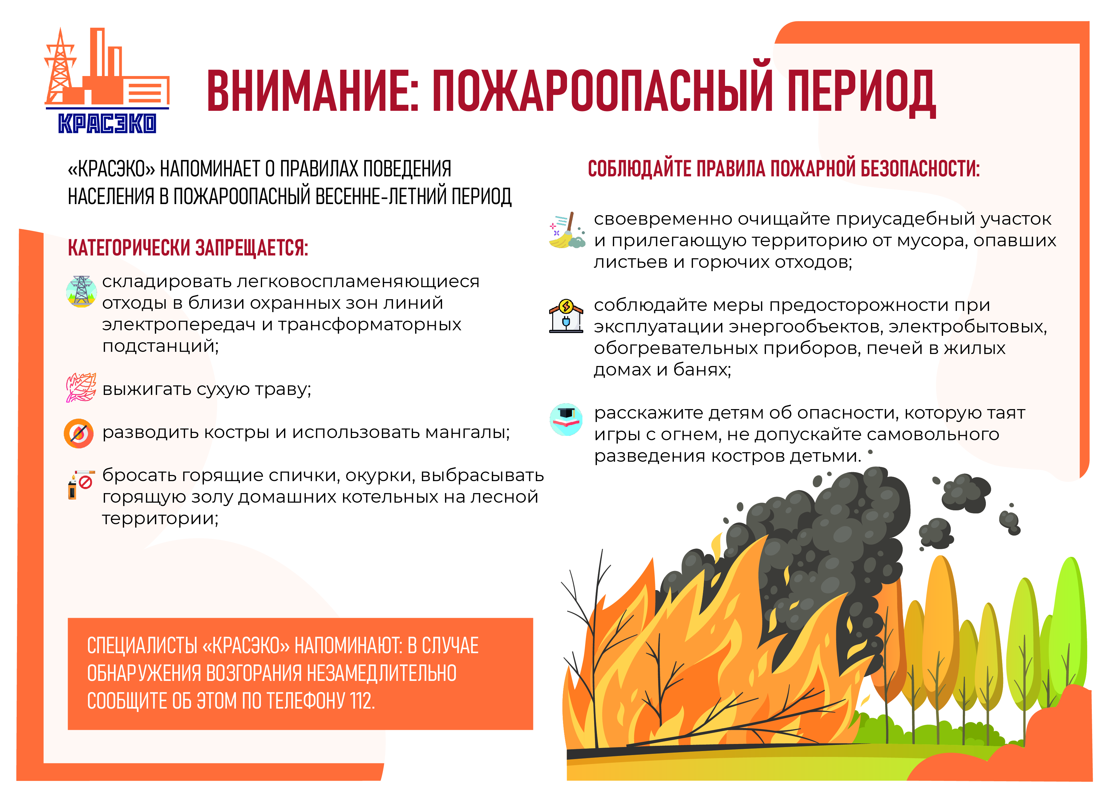 Публикуем памятку от наших партнеров и мерах безопасности для предотвращения пожаров:
