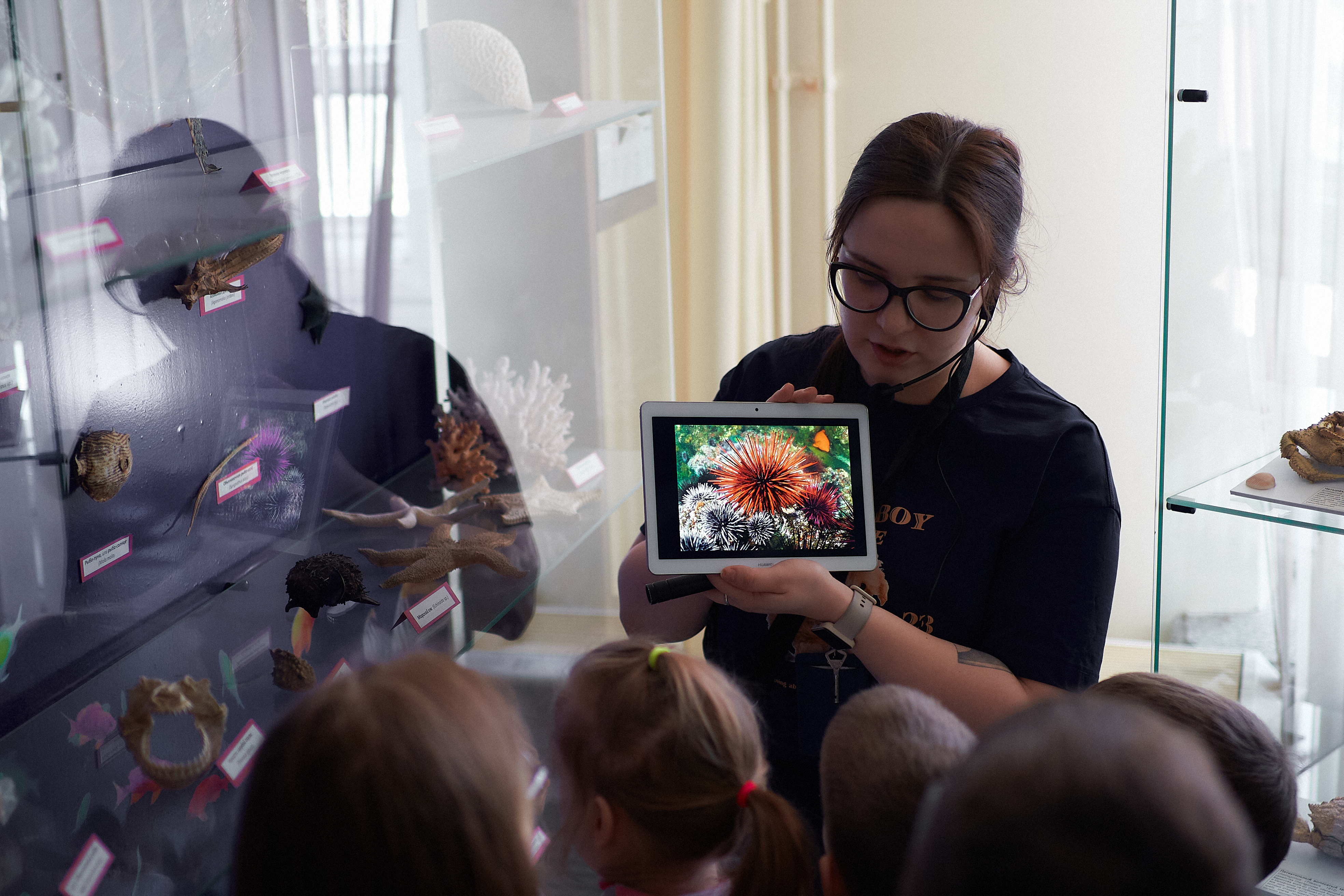 Экскурсия прошла в одном из старейших музеев Сибири и Дальнего Востока. Дети обсудили роль воды в повседневной жизни человека, а также познакомились с обитателями мирового океана: зеленой черепахой, голубой акулой, морским коньком и многими другими. Здесь же юные красноярцы узнали, что размах клешней камчатского краба может достигать 1,5 метров, а у лангустина самый крепкий панцирь из отряда ракообразных.